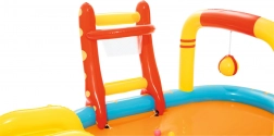Bogata oprema, vključno s keglji, napenjalnimi obroči, žogicami in košem, spodbuja različne aktivnosti ter razvija koordinacijo in motoriko. Starši bodo cenili preprost izpust vode zahvaljujoč izpustnemu ventilu in enostavnemu vzdrževanju. Odlično za popoldansko razigranost s prijatelji in družinsko veselje.