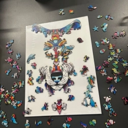 Po končanem sestavljanju nastane pisana podoba volka, ki jo lahko uporabite kot stilsko stensko dekoracijo. Vsak košček je edinstven, nekateri imajo oblike živali, kar sestavljanje naredi še zabavnejše. Puzzle so odlično darilo – dobavljene so v elegantni blagovni škatli in dodatno v zaščitnem transportnem kartonu.