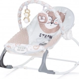 Udoben gugalni stolček za dojenčke in malčke združuje pomirjujoče vibracije, prijetne melodije in zabavni lok z igračami. Zahvaljujoč dvema položajema naslonjala, varnim 3-točkovnim pasom ter možnosti uporabe do 18 kg je idealen za igro, počitek in uspavanje.