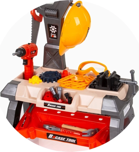 Set vsebuje delovno mizo z odlagalnimi predali, čelado in pester izbor orodja, vključno z vrtalnikom in izvijači. Med igro otroci vadijo koordinacijo oko–roka, se učijo potrpežljivosti in osnov organizacije dela. Izdelek izpolnjuje evropske varnostne standarde za igrače.