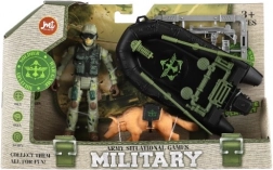 Podrobno izdelan vojak s čelado, jopičem in puško omogoča dinamične poze in realistično akcijo pri vsaki igri.