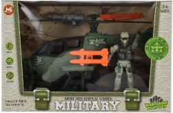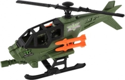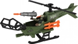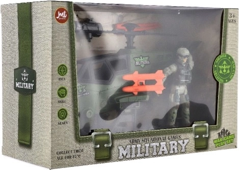 Ta realistični set otrokom prinaša vznemirljiv svet letalskih misij. Zeleni helikopter s črnimi rotorji in oranžnimi izstrelki, podrobno izdelana kabina ter premična figurica vojaka spodbujajo domišljijo, fino motoriko in timsko igro.
