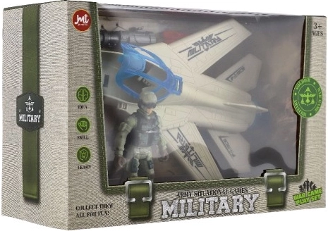 Ta privlačen vojaški set otrokom prinaša ure napete zabave. Realistično lovsko letalo z odpirljivim pokrovom kabine in odstranljivimi dodatki ter akcijska figurica vojaka v polni opremi spodbujajo igro vlog in razvoj domišljije.
