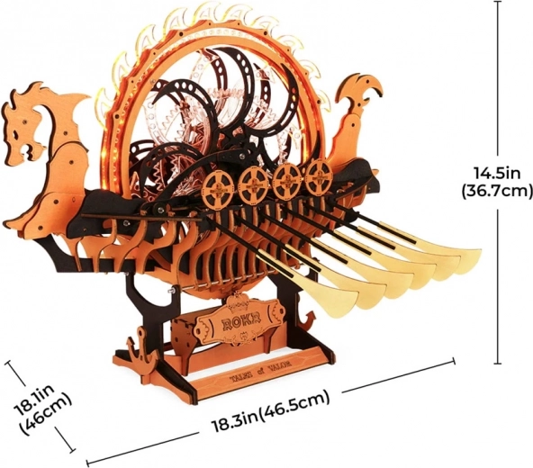 Vikinška zmajeva ladja je navdihnjena s starodavnimi plovili drakkar, ki so bila znana po svoji hitrosti in okretnosti. Zahvaljujoč sofisticiranemu dizajnu s sinhroniziranim rotacijskim gibanjem vesel in zmajevo hrbtenično svetilko bo vsaka sestavljena ladja okras vsakega prostora.