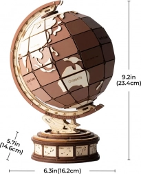 Globus ima robustno konstrukcijo z 12 močnimi rebri za stabilnost in vrtljivo osnovo, ki prikazuje vrednosti zemljepisne širine. Sestavljanje je enostavno in zabavno zahvaljujoč natančno izrezanim in oštevilčenim delčkom.
