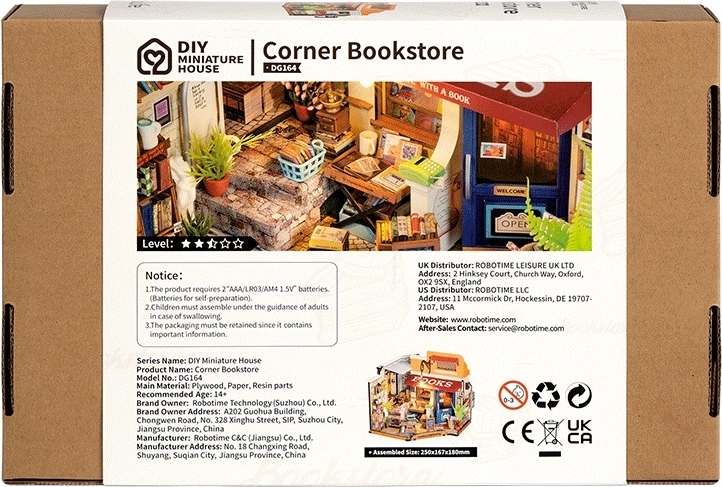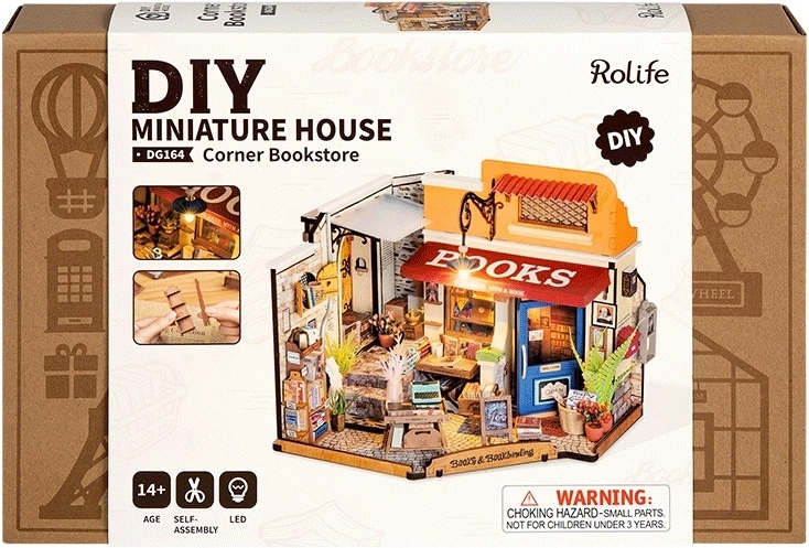 Knjigarna na vogalu je idealen leseni model za vse ljubitelje knjig in dekoracij. Ta DIY set je sestavljen iz 108 kosov, ki so natančno izrezani z laserjem iz 2 mm lipove vezane plošče.