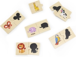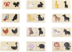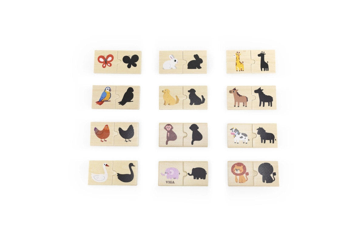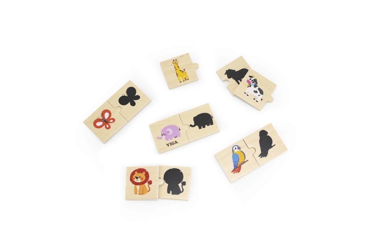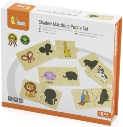Lesene sestavljanke otrokom omogočajo, da skozi naravno igro spoznavajo živali, žuželke in ptice ter njihove sence.