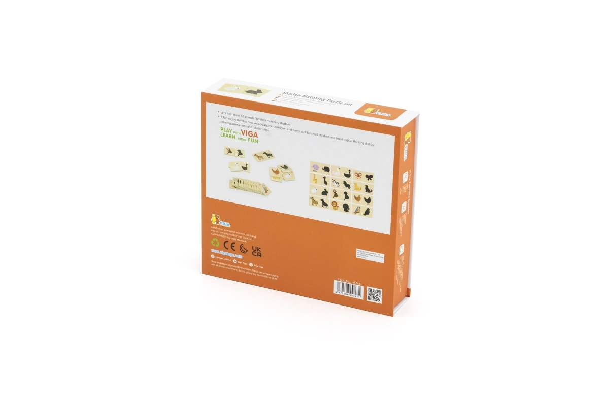 Leseni komplet sestavljank »Sence živali« je idealna izobraževalna igrača, ki podpira učenje barv, oblik in odkrivanje sveta okoli nas. Otroci lahko sestavljajo puzzle ter ujemajo živali z njihovimi sencami na ustreznih ploščicah, kar pomaga razvijati prepoznavanje in razlikovanje senc.