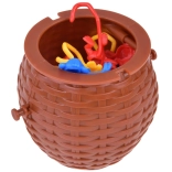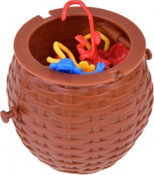 Plastični koš s pokrovom je odličen ne le za igro, ampak tudi kot prostor za shranjevanje opic po koncu igre.