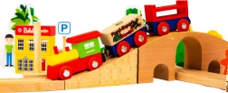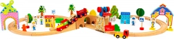 Ta leseni komplet vlakov znamke Ecotoys je popoln sklop igralnih elementov, ki vsebuje 74 delov, kot so vozila, prometni znaki in stavbe, ki jih lahko otroci poljubno sestavljajo v privlačne postavitve. Zasnovan je z mislijo na otroško varnost, iz kakovostnih materialov. Zaradi velike količine dodatkov se lahko otroci dolgo igrajo in pri tem razvijajo spretnost, koordinacijo in kreativnost.