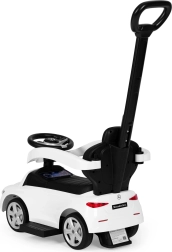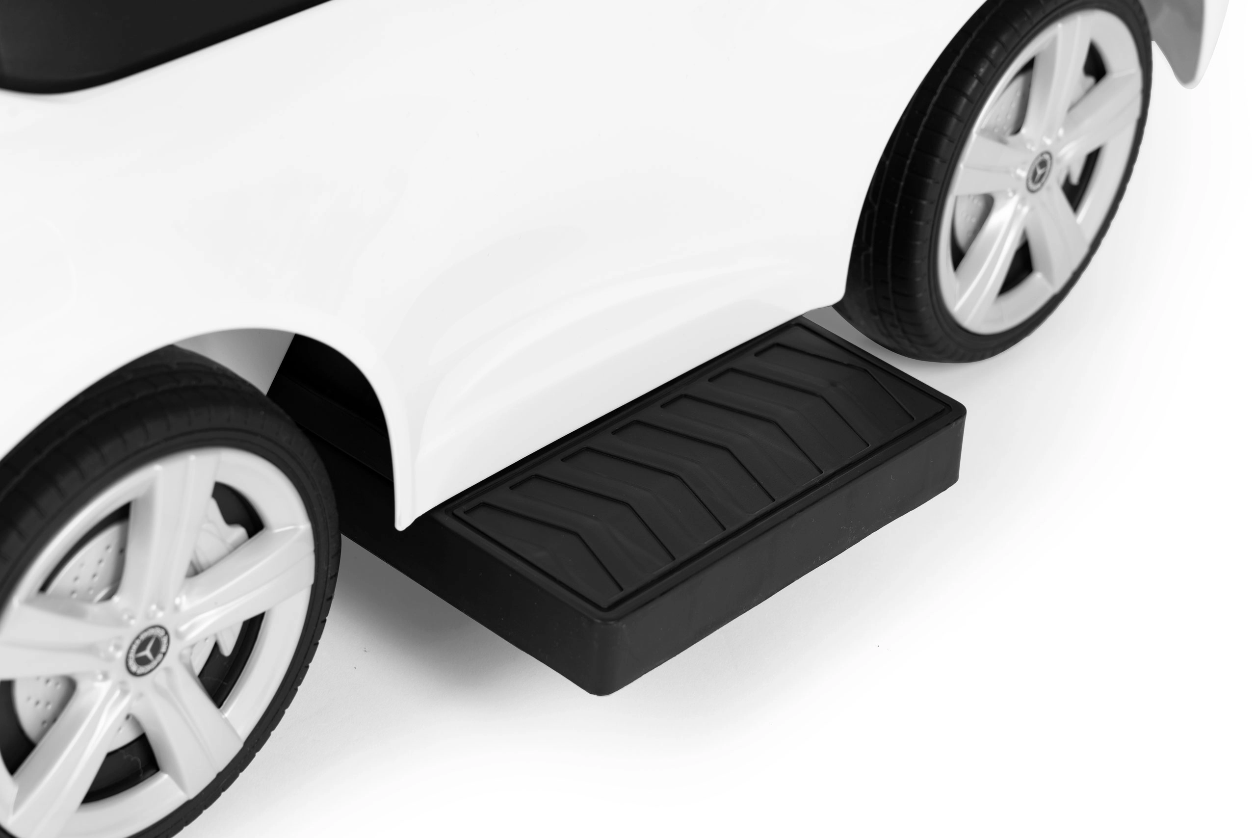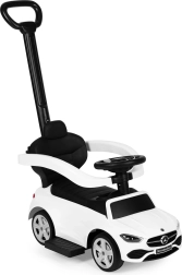 Stajliš poganjalec z licenco MERCEDES C‑Class za otroke od 12 mesecev ponuja varno in stabilno konstrukcijo, udoben naslon s vodilnim ročajem, varnostne ograje ter interaktivni volan s hupo in zvokom zagona. Ne manjka shranjevalni prostor pod sedežem in element proti prevrnitvi. Največja nosilnost 25 kg.