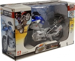 Ta otroški baterijski motor v intenzivni modri barvi prinaša veliko zabave in urjenja motorike. Zaradi sprednjih in zadnjih luči ter glasbenih/zvočnih učinkov deluje realistično in pritegne otroke v igro. Robustna izvedba v merilu 1:8 je odlična za domače dirke in ustvarjalno igro.