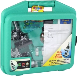 .Vaš mali znanstvenik bo odslej lahko raziskoval naravo kjerkoli zahvaljujoč prenosnemu kovčku, v katerem bo imel vso potrebno opremo. Odličen način, da otrok spozna svet znanosti in narave. Lahko bo odkril, kako pod povečavo izgledajo časopisna slika, list, prst ali las. Ima nastavljivo ostrenje. Z mikroskopom, ki je namenjen opazovanju vsakdanjih predmetov, bo razkril skrivnosti malega sveta in mikrobiologije.