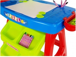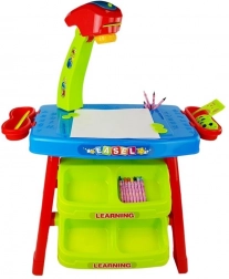 Podprite ustvarjalnost in fino motoriko svojih otrok s tem večnamenskim mizičnim kompletom s projektorjem. Zahvaljujoč projekciji predlog lahko preprosto prepisujejo in barvajo, medtem ko praktični predali poskrbijo, da so vsi pripomočki vedno na svojem mestu. V kompletu je do 36 slikovnih šablon, 6 motivnih diskov, barvni risarski pripomočki ter predloge za geometrijo in črke. Stabilna konstrukcija, prijetne barve in varni materiali zagotavljajo udobno in zabavno ustvarjanje vsak dan.