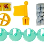 Komplet vsebuje dele ledenika, zastavico, kepe in dekorativne nalepke. Sestavljanje je hitro in intuitivno.