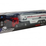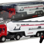 Predstavljamo daljinsko vodeno cisterno, ki otrokom omogoča raziskovanje sveta gradbenih vozil v udobju njihove igre. Vozilo je opremljeno s plastičnimi, profiliranimi kolesi, kar omogoča uporabo na različnih površinah. Rdeča kabina z belo nadgradnjo, dopolnjena s kontrastnimi črnimi detajli in značilnimi nalepkami, prinaša realističen videz.