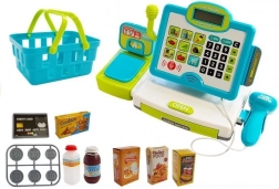 V kompletu so nakupovalna košarica, plastičen denar in igrače v obliki živil, kar otrokom nudi široko paleto igralnih scenarijev.