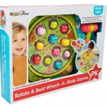 Ko se disk ustavi, se igra konča. Seštejte zadetke in predajte kladivce naslednjemu igralcu. Več zadetih krtkov odloča o zmagovalcu! Hitrejši tempo pomeni večji izziv. Vesele melodije poskrbijo za odlično vzdušje.