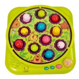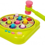 Izzovite svojo družino na tekmovanje in ugotovite, kdo je najhitrejši lovec na krtke! Ko z gumbom GO zavrtite igralni disk, se pojavijo krtki. Tempo igre lahko prilagajate, hitreje ali počasneje, s pomočjo drsnika. Vaša naloga je zadeti krtka z gumijastim kladivcem, ko pokuka ven. Kot dober udarec se šteje tisti, ko krtko izstreli izven površine.