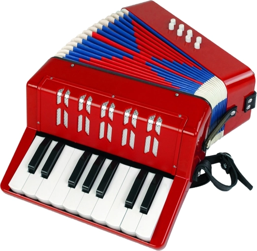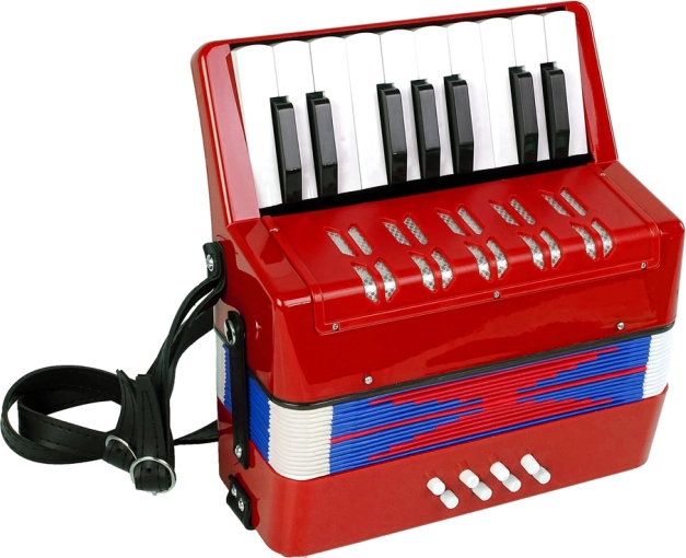Odkrijte veselje do glasbe z otroško harmoniko, ki izgleda kot pravi inštrument in presenetljivo dobro zveni. Spodbuja motoriko, glasbeni posluh in naravno ljubezen do glasbe. Z 17 tipkami in 8 basovskimi gumbi si otroci zlahka osvojijo prve melodije in ritme.