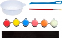 - Celovit komplet: kalupi, sadra, 6 barv, čopič, magnetni trak in navodila.
