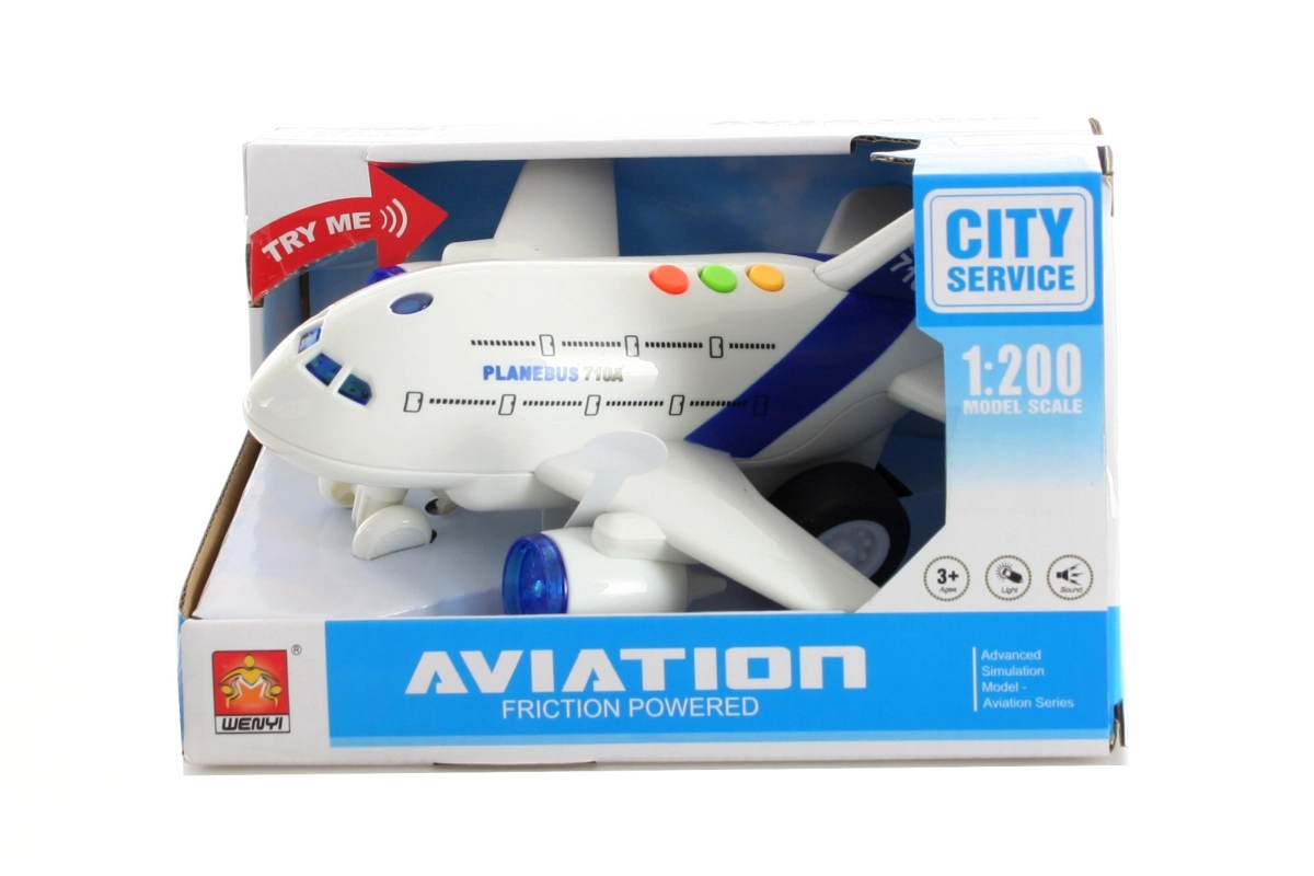 Letalo na baterije z lučko in zvokom. Napajanje 3x AG13 (priložene v pakiranju). Dimenzije letala približno 20 x 17 cm. Dimenzije pakiranja približno 21,5 x 15 x 13 cm. Starost 3+.