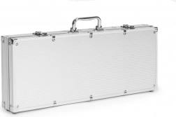 Ta kompleten set vsebuje vse potrebno za igro pokra in blackajka, zapakirano v vzdržljiv kovinski kovček. Zlahka ga vzamete s seboj na izlete ali srečanja s prijatelji. Kovček je zaklenljiv (2 ključa sta priložena) za preprečitev nenamernega odpiranja in izgube komponent.