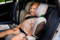 Globok, mehak in po višini nastavljiv naslon za glavo skupaj s stransko zaščito učinkovito absorbira energijo udarca ter ščiti otrokovo glavo in vrat.