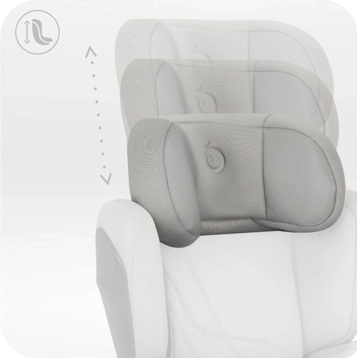 Globok, mehak in po višini nastavljiv vzglavnik v 9 korakih ščiti glavo in vrat, absorbira energijo udarca in raste skupaj z otrokom.