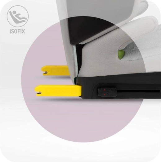 Hitro in zanesljivo pritrditev v vozilo s sistemom ISOFIX. Vidni indikator potrjuje pravilno pripetje in zmanjšuje tveganje napačne montaže.