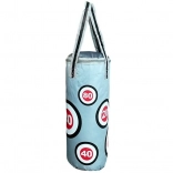 Na vreči so označene krožne tarče s točkovanjem, ki otroke spodbujajo k natančnim udarcem ter izboljšujejo koordinacijo in zbranost.