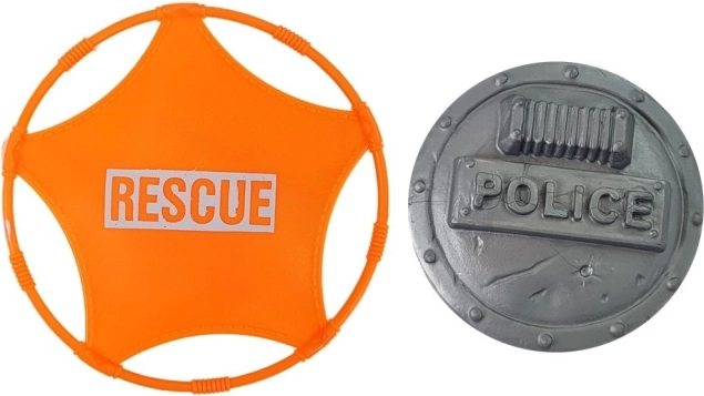Disk in značka z motivi reševalnih služb spodbujata otrokovo domišljijo in njihove zgodbe pri policijskih akcijah.