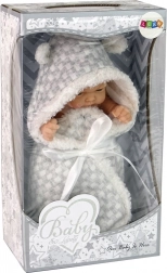 Ta prisrčna punčka je oblečena v toplo sivo povijalko z belo mašno, zaradi česar izgleda kot pravo dojenče. Otroci se pri igri učijo empatije, odgovornosti in fine motorike, ko za punčko skrbijo. Velikost 24 cm je odlična za enostavno držanje in prenašanje.
