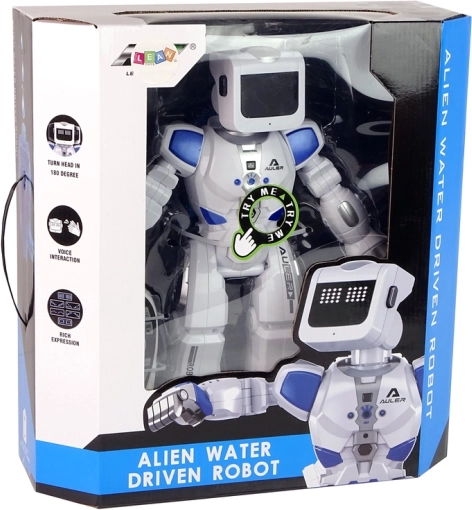 Pozdravite prijatelja iz prihodnosti! Ta inteligentni vodni robot združuje sodobno tehnologijo s preprostim upravljanjem, da navduši male in velike ljubitelje hi‑tech igrač. Po vklopu se prižge LED-obraz, ki menja izraz, robot pa vas prijazno pozdravi. Za polno funkcionalnost le napolnite vodni rezervoar na hrbtu (uporabljajte samo vodo iz pipe) in zabava se lahko začne.