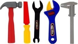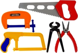 Set vsebuje orodja iz varne in trpežne plastike v živih barvah, ki posnemajo prave predmete.