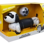 Robotski pes je zasnovan z mislijo na prihodnost in moderne tehnologije. Njegov črno-beli videz z harmonika učinkom omogoča gibljivost in prilagodljivost.