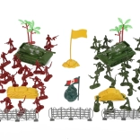 S tem kompletom lahko obogatite svojo obstoječo zbirko ali pa ga uporabite za postavitev lastnega vojaškega tabora. Vsebuje različne elemente, kot so vojaki, dva tanka, jarki, barikade in palme, ki so lahko prenosni in zasnovani tako, da ustrezajo otroškim rokam.