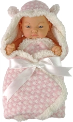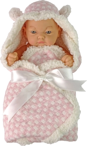 Lutka je oblečena v topel rožnat povojček z belo mašnico. Ima gibljive roke, kar povečuje interaktivnost in daje igri bolj realističen videz. Izdelana je iz certificiranih materialov visoke kakovosti, ki zagotavljajo varnost in dolgo življenjsko dobo igrače.