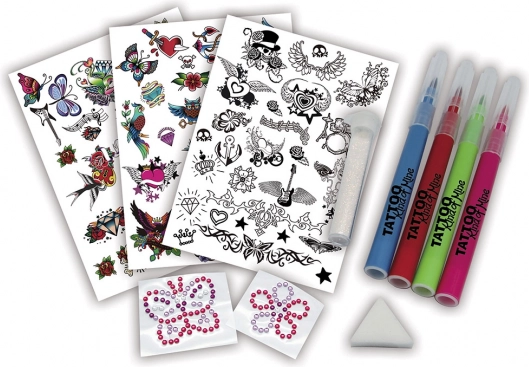 Ustvarite svoje lastne originalne tetovaže ali poskusite preoblikovati priljubljene motive. Komplet je enostaven za uporabo in zabaven za vsako priložnost.