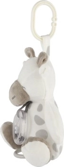 Zahvaljujoč praktičnemu sponku/zanki žirafo preprosto pritrdite na posteljico, voziček ali avtosedežek – idealno za doma in na poti.