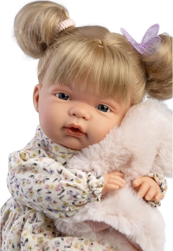 Punčka Joelle je skrbno izdelana v Španiji in deluje zelo realistično – ima nežno senčenje, čudovite trepalnice in izrazite oči. Zaradi mehkega trebuščka je prijetna za držanje in primerna za vsakodnevno igro.