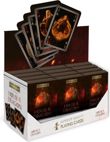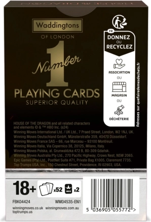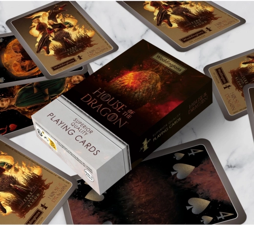 Potopite se v kartne pustolovščine z igralnimi kartami Waddingtons House of the Dragon, ki vas popeljejo naravnost v očarljivi svet drznih strategij in mogočnih likov. Vsaka karta ponazarja energijo legendarnih junakov, zmajev in ključnih prizorišč iz serije House of the Dragon.