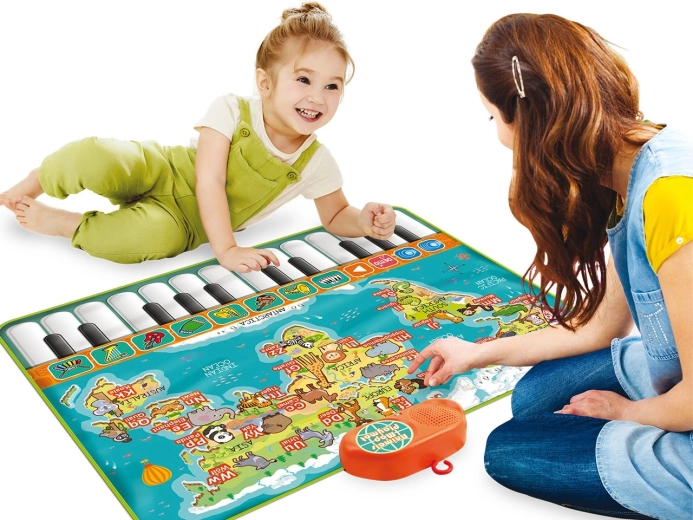 Odkrijte svet zvokov in črk s to zabavno in izobraževalno podlogo. Otroci na njej ne igrajo le na klavir, temveč spoznavajo tudi zvoke živali in različna glasbila. Zaradi zemljevida na površini podloge je učenje igrivo in naravno.