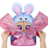 Z L.O.L. Surprise Tweens Kostumskim Bliščem prihajajo nova in razburljiva doživetja. Začnite z vlečenjem zadrge na spodnjem delu embalaže in odstranite rožnati pokrov, da razkrijete skrivnostno papirnato ovojnico. Opazujte, kako se pakiranje povečuje in polni, nato pa, ko je popolnoma napihnjeno, pretrgajte papir in odkrijte čarobni kostum turkiznega mucka!