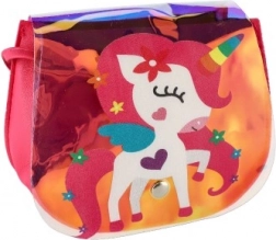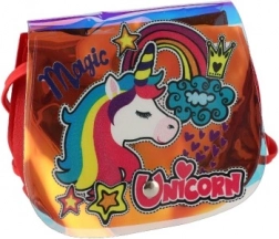 Odkrijte čarobnost s to mavrično torbico, ki je okrašena s čudovitim samorogom in mavrico. Ta torbica ni le lepa na pogled, ampak je tudi zelo praktična. Izdelana je iz odpornega in prijetnega materiala, zaradi česar je idealna za vsakodnevno uporabo.