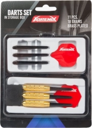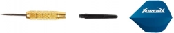 Ta univerzalni komplet puščic ponuja zanesljiv oprijem in stabilen let zahvaljujoč kombinaciji trdnega telesa puščice in kakovostnih peres. Kovinske konice zagotavljajo zanesljivo zapičenje v tarčo in dosleden rezultat pri vsakem metu. S praktičnim etuijem imate puščice vedno varno shranjene in pripravljene za prenos.