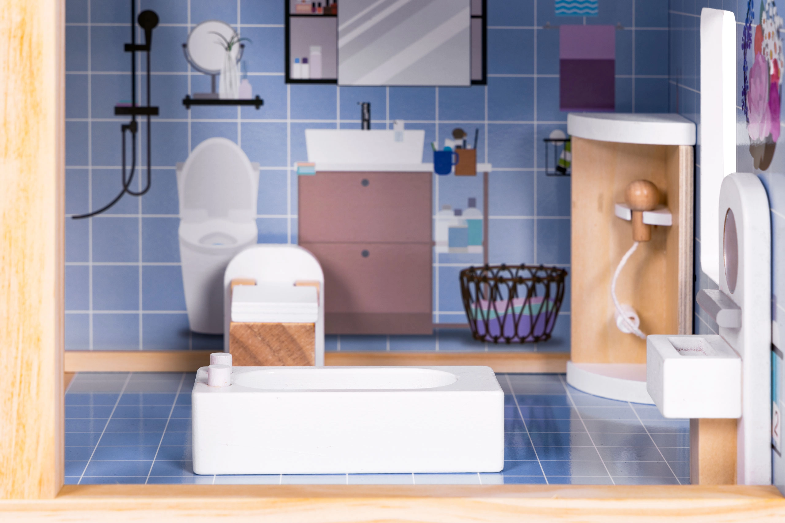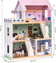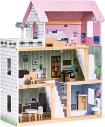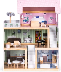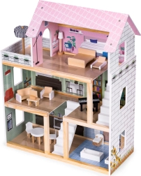 Hišica za punčke ECOTOYS očara z dobro izbranimi barvami in posebej zasnovanimi prostori. Zato bo videti odlično ne le v otroški sobi, temveč tudi v dnevni sobi in bo navdušila vse člane gospodinjstva.