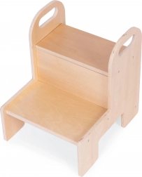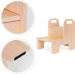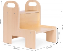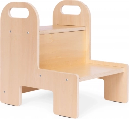 Močna 12 mm vezana plošča, zaobljeni robovi in dve prostorni stopnici zagotavljajo otrokom zanesljivost pri vsakodnevni uporabi v kuhinji in kopalnici.