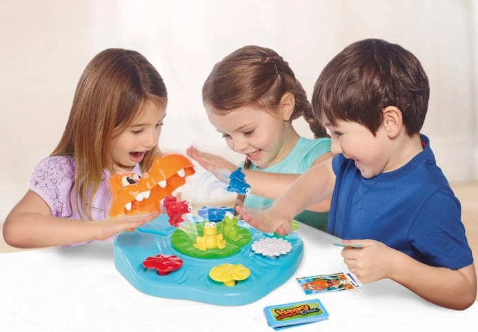 Napeti trenutki nastopijo vsakič, ko se na karti pojavi krokodil. Kdor prvi pritisne lokvanj, reši svojo žabico!
