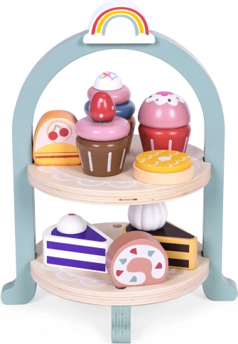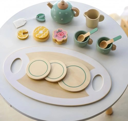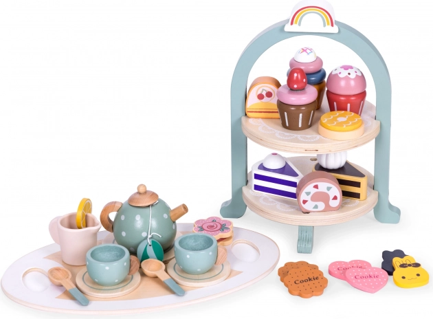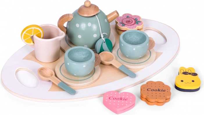 Ta odličen set otroke popelje v svet odraslih, kjer bodo uživali v fantastični zabavi s svojo družino. Vsebuje vse potrebno za organizacijo posebnega popoldneva: vrč, skodelice, krožničke in praktičen pladenj. Nobena čajanka ne gre brez slaščic, zato set vključuje pisane piškote, tortice in mafine, ki navdušijo z realističnim videzom. S temi igračami lahko otrok prevzame vlogo odraslega in vas povabi na okusen čaj in sladke prigrizke. Poleg odlične zabave bo vaš otrok razvil svojo domišljijo in ročne spretnosti, naučil se bo pripraviti okusen čaj ali kavo ter osvojil pravila pogrinjka.